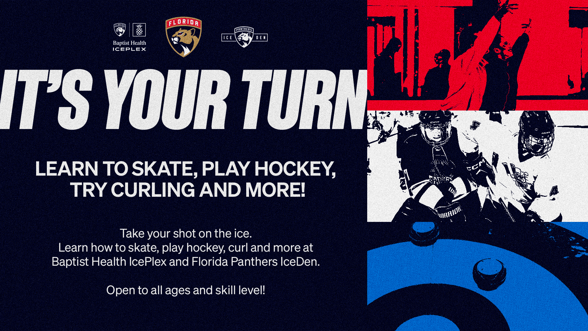 SUNRISE, Fla. – The Florida Panthers announced today that both Baptist Health IcePlex in Fort Lauderdale and Panthers IceDen in Coral Springs have a variety of ice sports for fans of all ages and skill levels to participate in year-round.